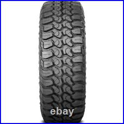 The steeped and staggered tread blocks, open shoulders, stone ejecting ribs and wide grooves maintain a clean footprint. They clean out mud and eject rocks stuck between the tread elements. As a result, the tire's footprint is not blocked from its contact with the road surface, while it also avoids stone retention from harming the tire's casing. The tread pattern and special all season compound increase the all weather performance. The large tread blocks and high void ratio improve the tire's off-road performing capability in dry, wet and winter weather. The silica-based compound maintains its rubber flexibility throughout the year, including in winter weather. The tread's self-cleaning nature eliminates snow from the footprint to heighten the tire's traction and terrain surface contact and guarantee a secure performance. The model is easily controlled on all off-road terrain surface conditions. The tread design's maintained road contact enhances the tire's steering responsiveness and driving stability.In other words, the tread blocks closely follow the terrain surface, which stabilizes the tire's structure against the driving pressure affecting it and improve its response time and precision to the driver's steering instructions. The special stabilized shoulder tread blocks upgrade the cornering and maneuvering capability. The large stable blocks boost the tire's grip on the terrain surface, which guarantees a secure driving capability. The DX-9 Bandit M/T was manufactured with a reinforced internal structure.